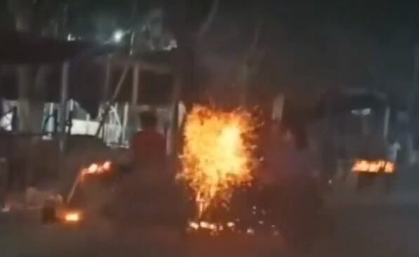 Dos personas permanecían en la vía pública, uno de ellos está subido en su motocicleta y graba el momento en el que dos mujeres indígenas en el calor de una discusión, agarran leños encendidos para agredirse una a la otra.