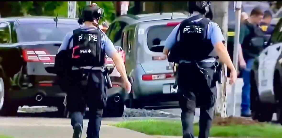 Como si fueran escenas de película, agentes de la policía se enfrentan a un tirador en un barrio de Minneapolis, EEUU.