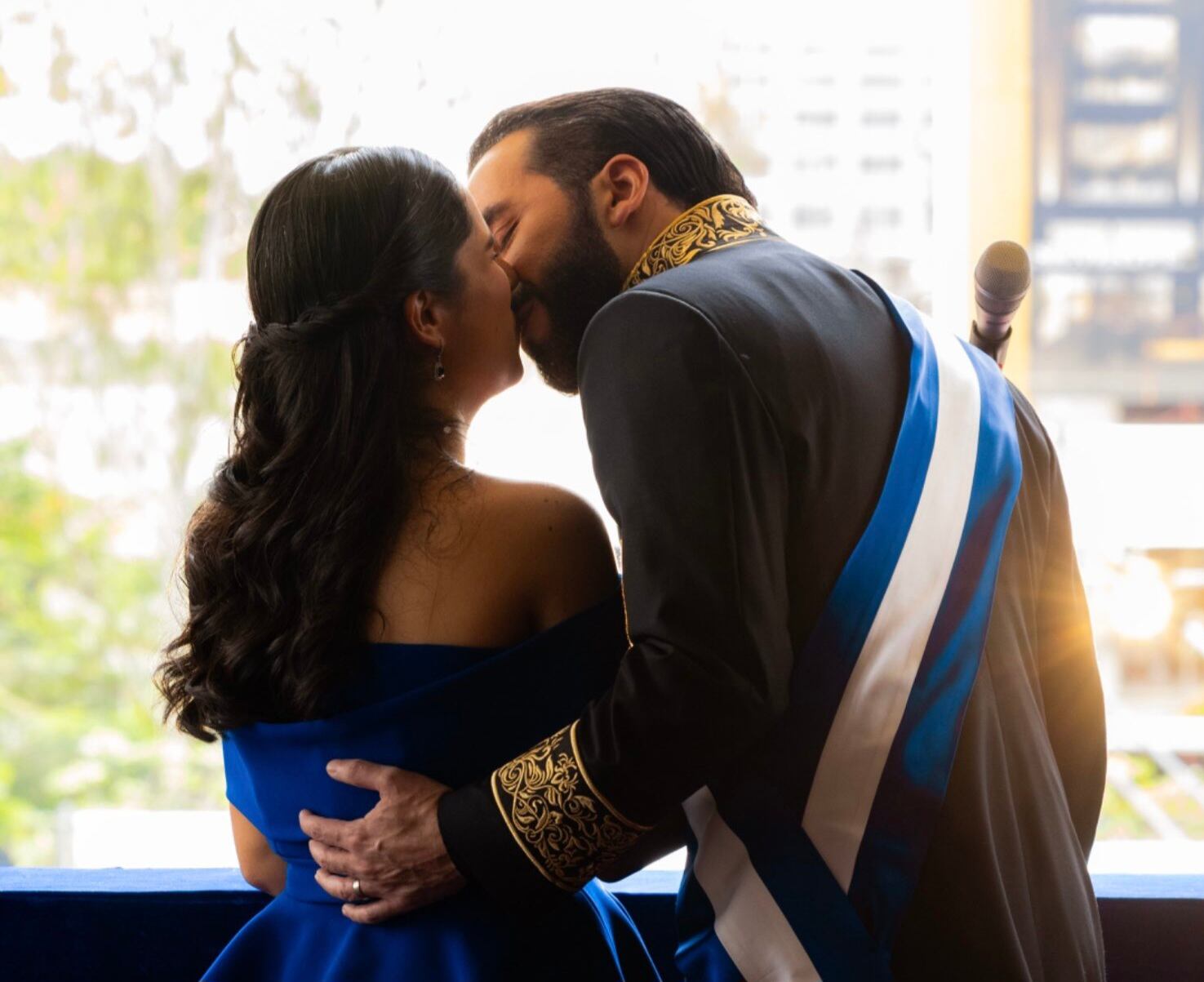 En su discurso presidencial, el derroche de amor entre el mandatario la primera dama no pudo pasar desapercibido. Bukele le plantó tres besos a su esposa frente a los asistentes de la plaza y estos reaccionaron con gritos y aplausos por su romance y encanto.