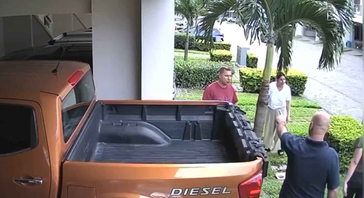 Una cámara de vigilancia grabó el altercado entre las parejas de vecinos. La discusión inició cuando las esposas de los sujetos alegaban por la distribución del servicio de agua en sus residencias. Una de ellas acusó a la otra de haber cerrado la llave de paso que abastece del vital líquido en su vivienda.