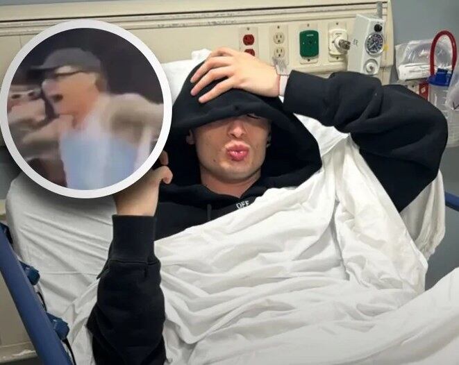 En los videos se puede ver como el artista se encontraba bien de salud cuando trató de pisar y no pudo, lo intentó varias veces, pero se dio cuenta que algo estaba mal y en su rostro se podía ver el dolor que le ocasionaba.