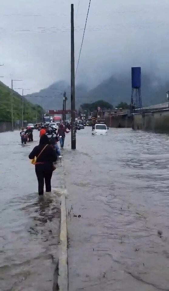 Caos vehicular por las terribles inundaciones en el kilómetro 36 de la ruta al Pacífico, Palín, Escuintla.