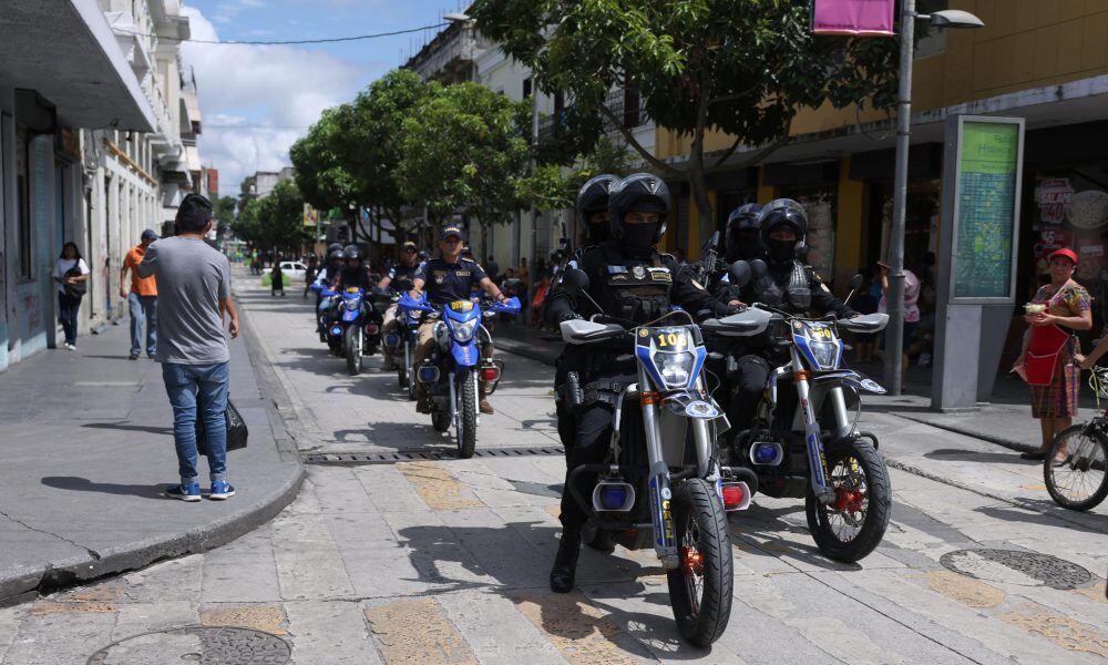 Internautas captan el momento en el que tres motociclistas de la Policía Nacional Civil (PNC) que se conducían por una calle de la ciudad capital pierden control del vehículo de dos ruedas.