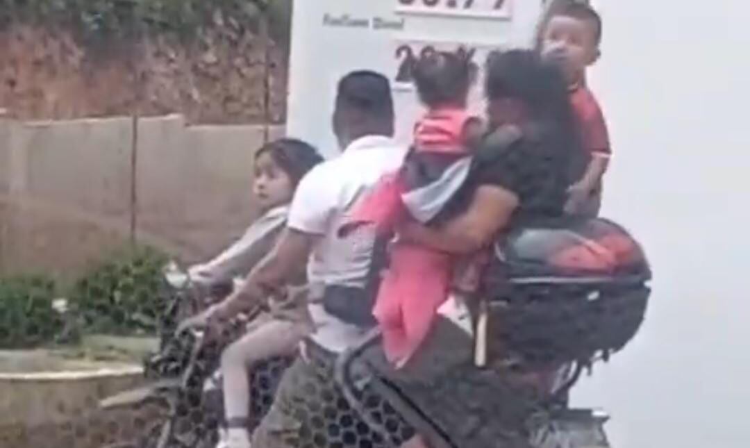 Internautas difundieron un video en redes sociales en el cual involucra a un motociclista con cuatro personas más a bordo, cabe destacar que tres de ellos son menores de edad y que no portan ningún tipo de seguridad para movilizarse.