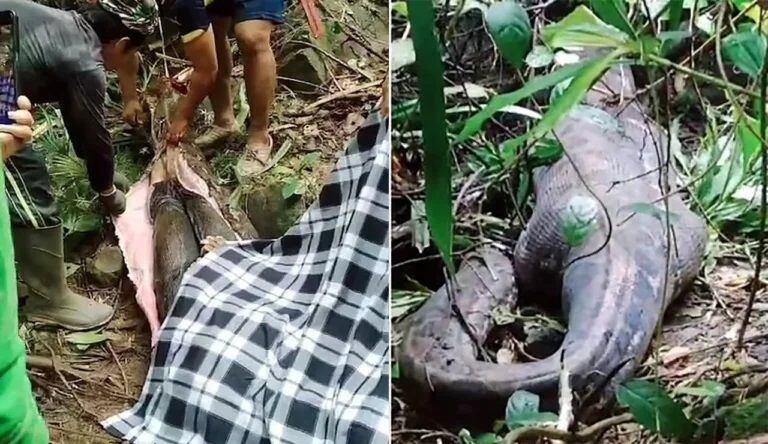 Una mujer, de 30 años, fue tragada viva por una serpiente pitón de nueve metros de largo en Indonesia, conmocionando al mundo por lo espeluznante del caso. La víctima estaba desaparecida y cuando su esposo salió a buscarla, vio sus piernas asomadas por la boca del gigantesco reptil.