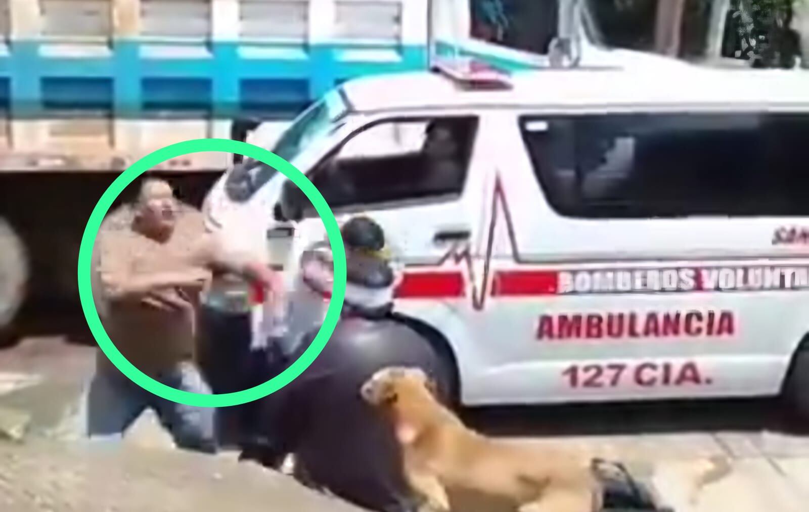 Quién comparte el video, describe que la acción del sujeto se dio porque exigía que los cuerpos de socorro movilizaran la ambulancia que estaba parqueada en una calle de ese municipio. Los paramédicos se ubicaron en ese espacio porque se encontraban atendiendo a un herido.