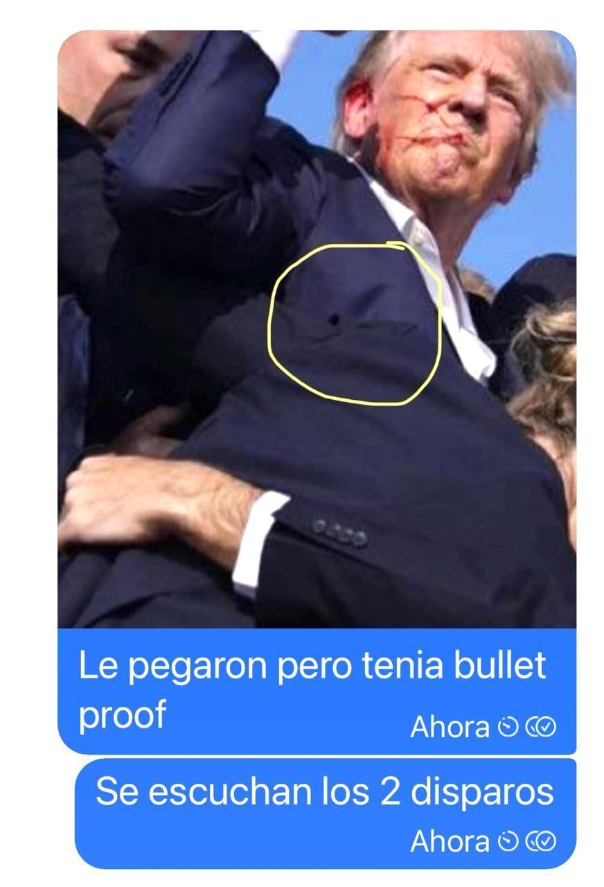 En redes sociales se han compartido varias fotografías y videos del momento en que el expresidente Donald Trump fue evacuado de un mitin en Pensilvania tras varias detonaciones. Al parecer, el virtual candidato republicano usaba protección antibalas.