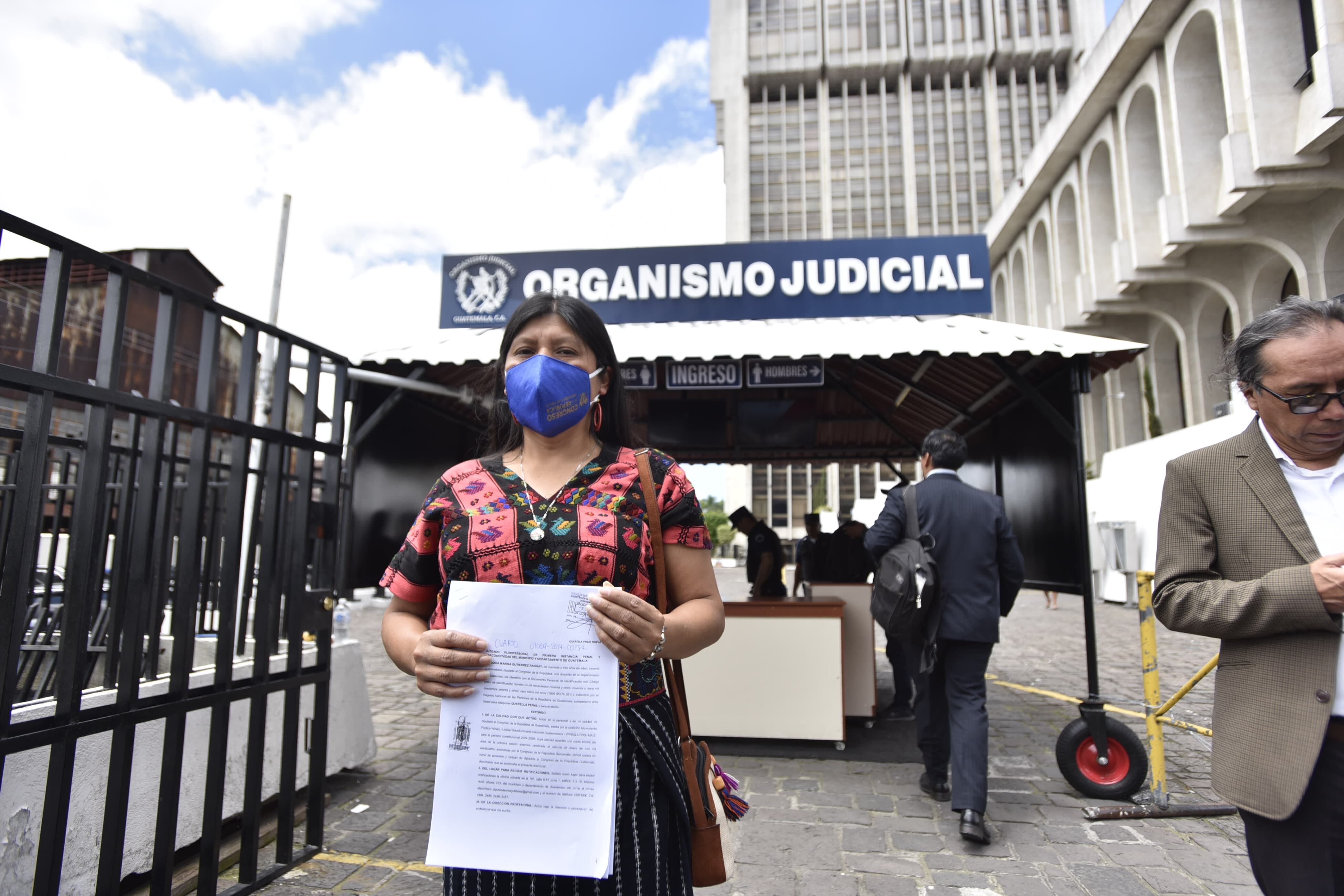 La diputada Sonia Gutiérrez Raguay, integrante de la Junta Directiva del Congreso como quinta secretaria, acudió a la Torre de Tribunales junto con su equipo para plantear un memorial y denunciar al legislador Allan Rodríguez, de la bancada Vamos, por seis delitos, entre ellos violencia contra la mujer en su ámbito psicológico.