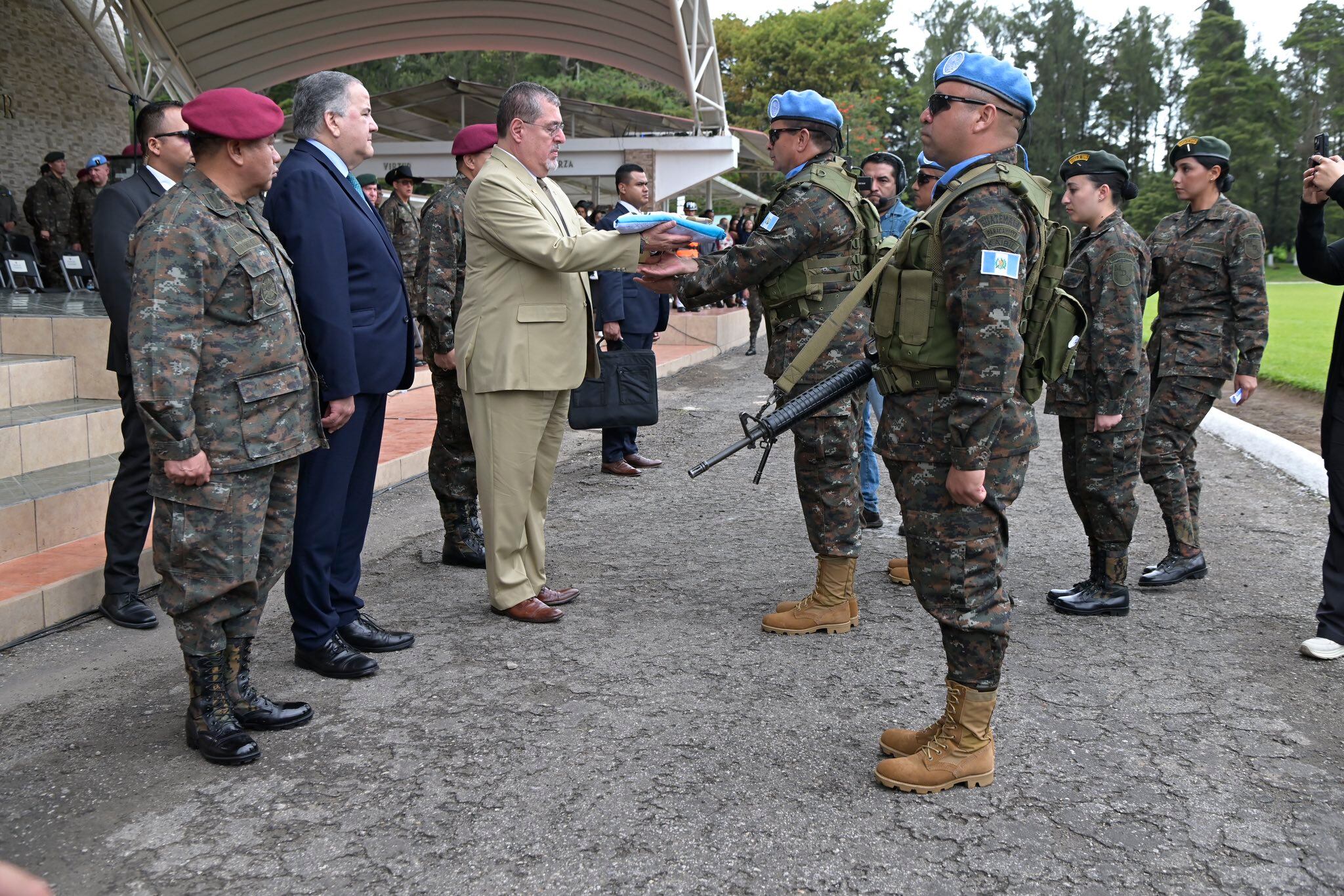 El acto de entrega de la Bandera nacional a los soldados que viajarán a República Democrática del Congo como una misión de paz de la Organización de las Naciones Unidas se hizo este sábado con la participación del presidente Bernardo Arévalo.