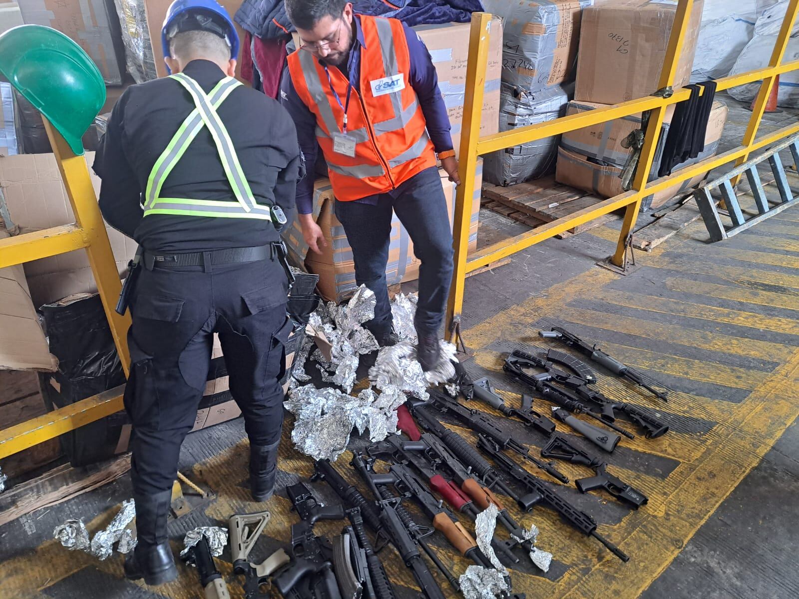 Fusiles de diferentes marcas y calibres fueron localizados este sábado en una “encomienda” enviada desde Estados Unidos. Se trata de un arsenal que la Policía Nacional Civil (PNC) localizó en el puerto Santo Tomás de Castilla, en Izabal.
