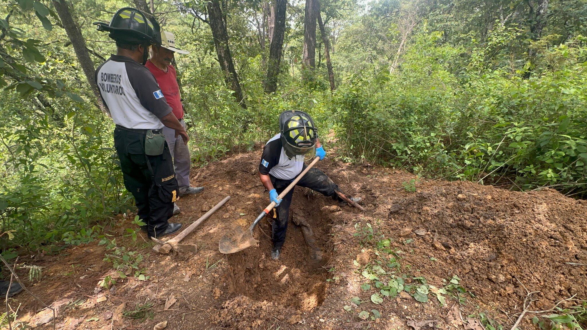 Entonces, los socorristas, con palas y piochas desenterraron el cadáver de la mujer en la finca La Esperanza, en la aldea El Chan 1.