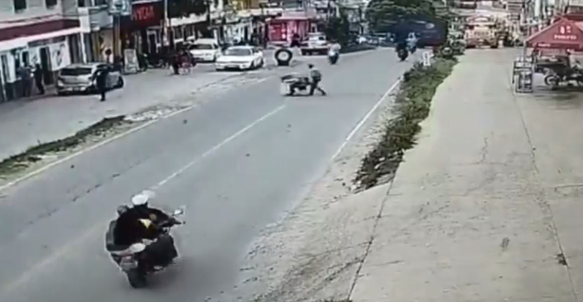 Un motorista fue captado en video cuando circulaba por San Pedro Ayampuc y atropelló a una persona de la tercera edad que conocen como “don Ricardo”, sin más detalles. Este incidente sucedió el mes pasado en el sector denominado como “el Rótulo” y el video se compartió en las redes sociales.