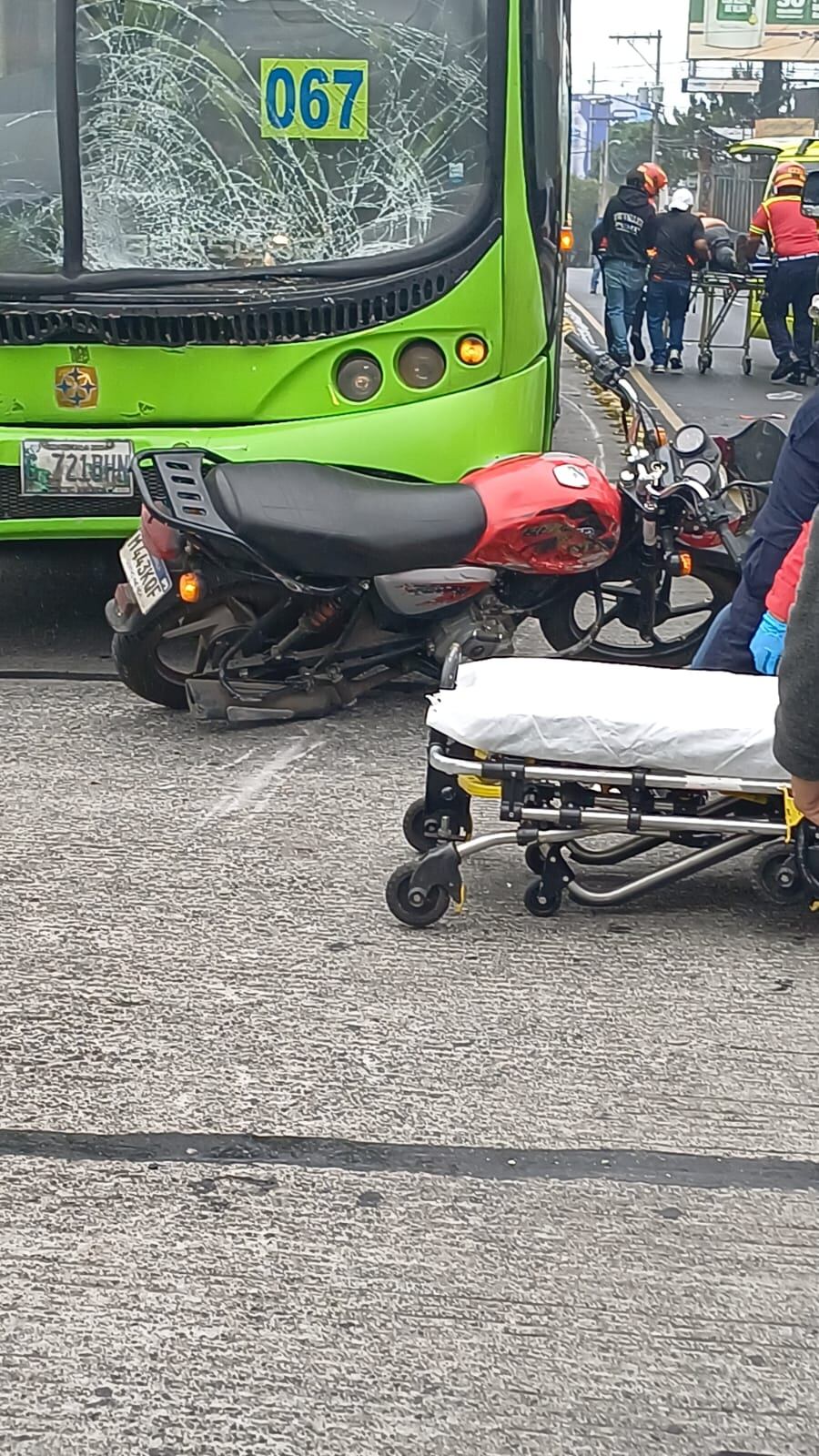 Según la información, el motorista se atravesó en el carril exclusivo del Transmetro, lo que provocó que el transporte embistiera el vehículo de dos ruedas, dejándolo tendido sobre la cinta asfáltica. Sin embargo, no ha surgido una versión oficial de lo que sucedió.