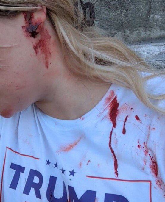 Mientras la golpean, los agresores no dejan de decir insultos, entre ellos: “¡Que te jodan blanco! ¡Que os jodan a todos los votantes de Trump, racistas…!”.