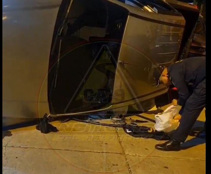 En el video se comparte cuando un automóvil particular choca con varios vehículos y termina volcado. Luego, se observa cuando policías están en el vehículo y, al parecer, estarían ebrios, lo cual no ha sido desmentido ni confirmado por la Policía.