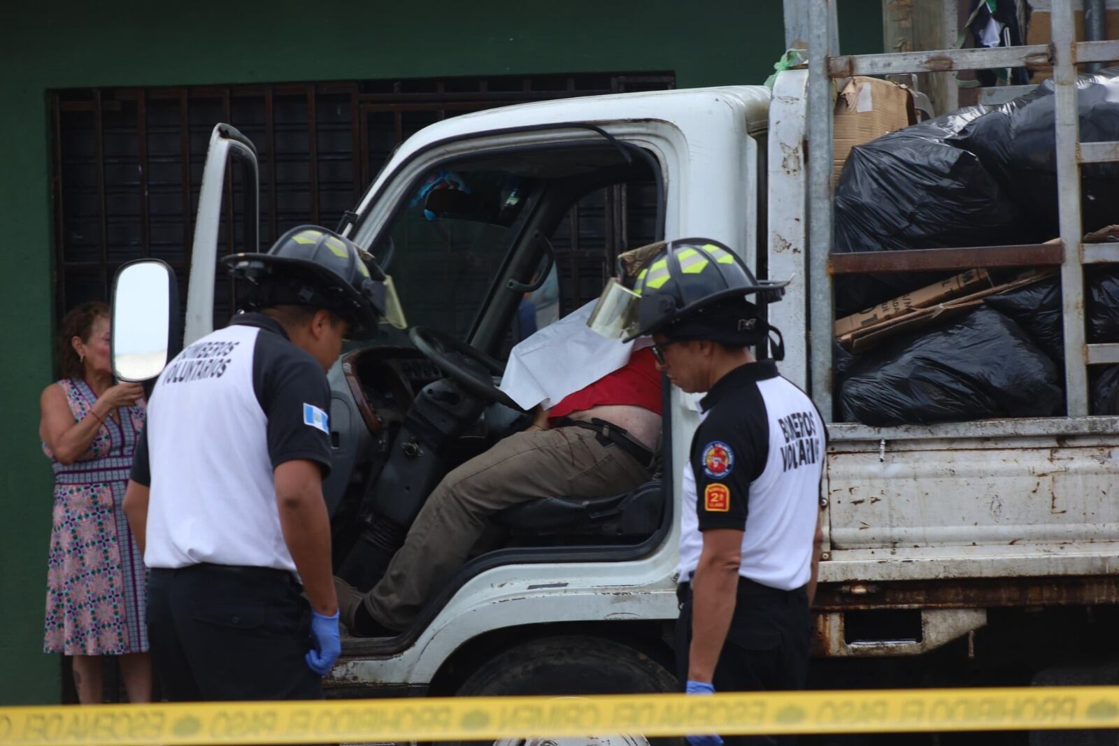 Bomberos Voluntarios asistieron la emergencia en el lugar e identificaron a la víctima como Jorge Luis Lemus Paz, de 36 años quien empezaba su jornada de trabajo cuando fue asesinado.