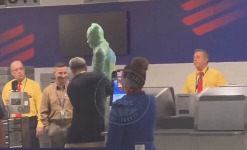 La solicitud fue denegada por parte de la aerolínea y los jóvenes no corrieron con tanta suerte, por lo que se aprecia que minutos después tuvieron que rendir cuentas con las autoridades del aeropuerto, quienes le quitaron las cintas al hombre, despojándolo de su disfraz, aunque se desconoce que pasó después con ellos.