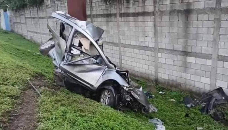 Según testigos, los pasajeros se conducían a excesiva velocidad, lo que provocó que colisionara con un poste del tendido eléctrico. Las imágenes del vehículo después del impacto son impresionantes, pues, el automóvil prácticamente se partió en dos.