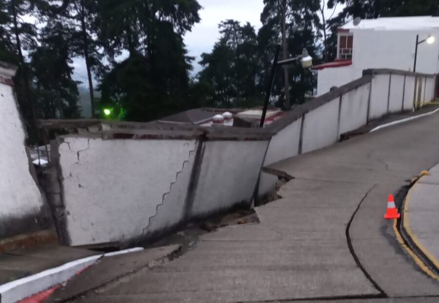 Internautas compartieron en redes sociales el momento exacto en el que un muro de contención cae debido a la saturación del suelo, esto derivado a las intensas lluvias de las últimas horas.