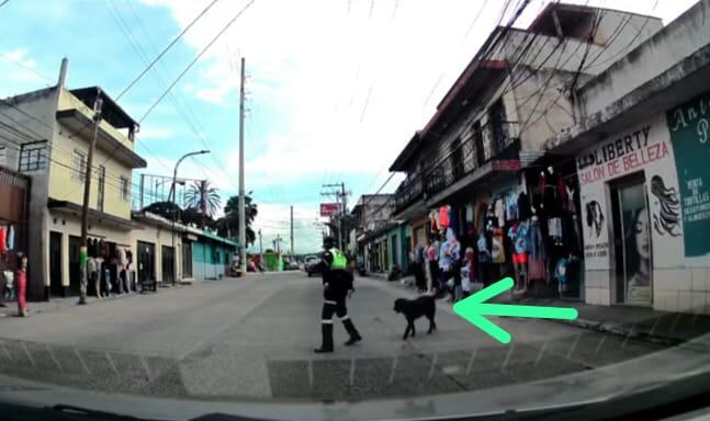 Por medio de la cámara del vehículo quedó captado cuando un perrito espera a un lado de la banqueta para poder cruzar. En las imágenes se observa cuando la agente detiene el tránsito para que el canino continúe su camino.