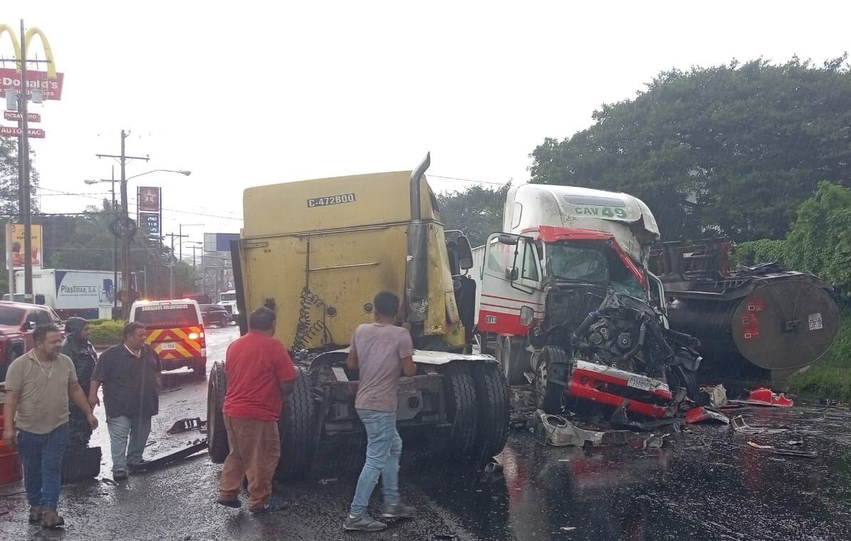 En horas de la tarde, de este martes 10 de septiembre, en el km 27 de la ruta al Pacífico, jurisdicción de Amatitlán, se registró un aparatoso accidente de tránsito que involucra dos cabezales del transporte pesado.