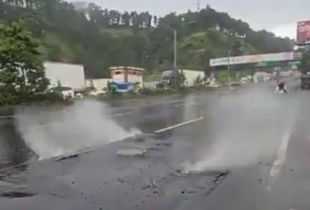 En las imágenes se aprecia que, tras las lluvias de ese día, el pavimento se levanta con fuerza y sale agua por debajo del asfalto, esto específicamente en el kilómetro 14 de ese tramo carretero de la ruta al Pacífico, en jurisdicción del municipio de Villa Nueva.