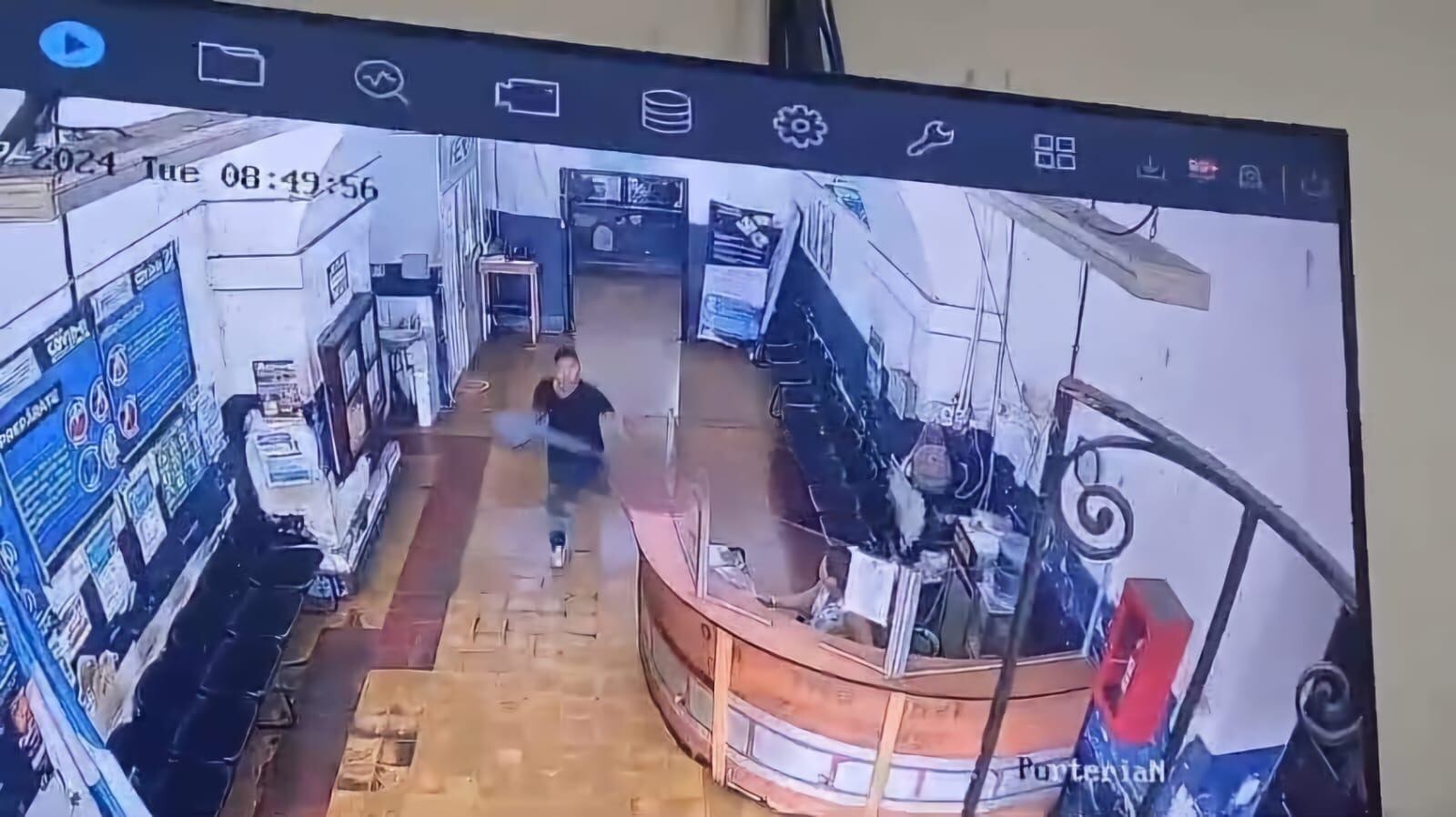 Las camaras de vigilancia grabaron el momento en el que el sujeto corre rápidamente a la salida. El sujeto viste un sudadero gris con el que cubre el grillete y playera azul.