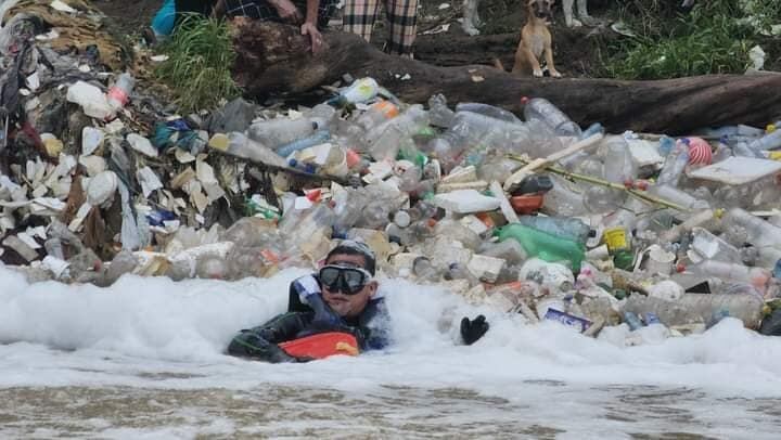 Las imágenes son impactantes, pues ante las toneladas de basura que desembocan en el lugar, el comando de los Hombres Rana nadaron con toda dificultad; sin embargo, suspendieron la actividad de localización debido a la lluvia.