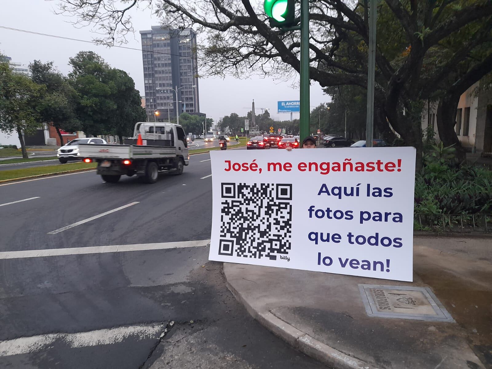 “José me engañaste. Aquí las fotos para que todos las vean”, es el mensaje del cartel.