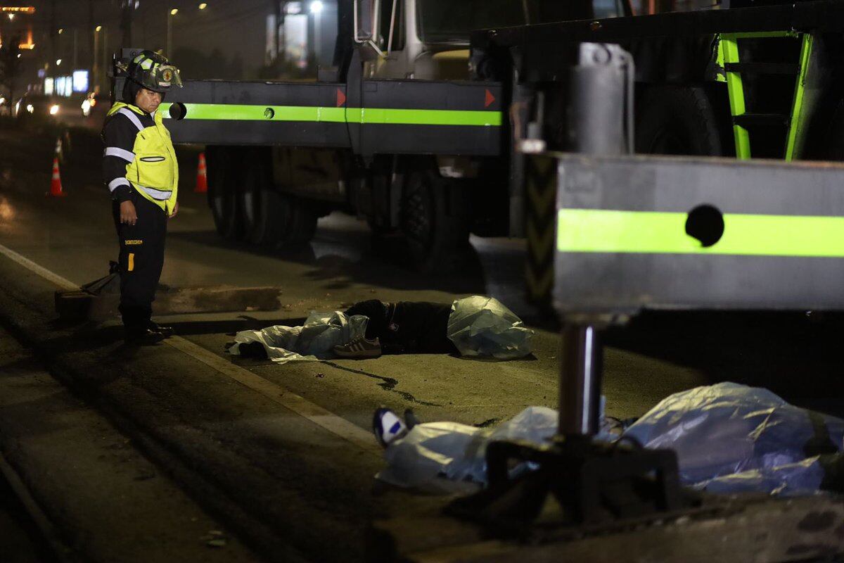 Dos hombres quienes viajaban en una motocicleta impactaron contra las bases de una grúa que hacía trabajos en el kilómetro 15.8 ruta a El Salvador.