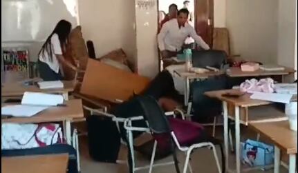 “Tranquilo, ya, tranquilo. Siéntate ahí, suelta eso (el cuchillo), Marco”, se escucha en el vídeo mientras los estudiantes que se encontraban en el aula salen corriendo y llorando del lugar. La grabación termina cuando el agresor deja de apuñarla a la joven y sale del aula caminando ante la mirada de miedo de todos los presentes.