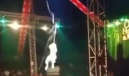 Durante una función del Circo del Horror, en Cuernavaca, Morelos, un payaso sufrió una caída del trapecio cuando una cuerda que utilizaba para su número se desató.