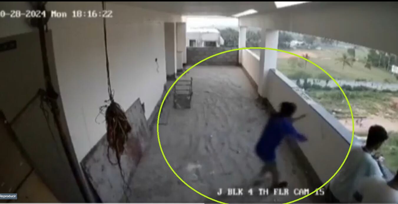 Cámaras grabaron el momento en el que un estudiante de ingeniería de 19 años, decidió saltar desde un edificio hacia el vacío en la India.