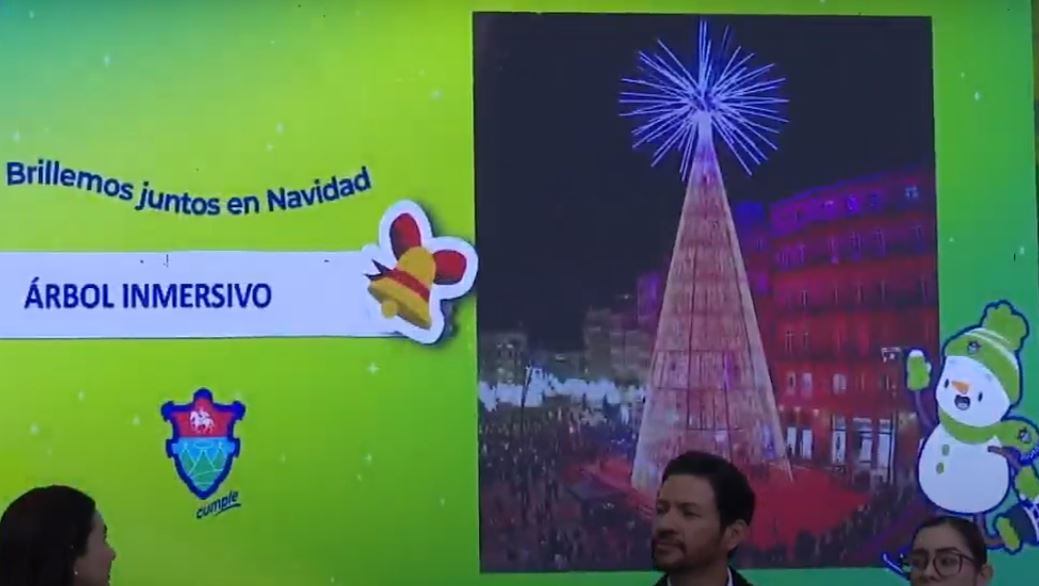 Durante la presentación de la actividad navideña se brindaron detalles del árbol de 16 metros de altura y 7 metros de diámetro. “Como parte de las innovaciones tenemos el árbol inmersivo en el cual podemos vivir una experiencia como el videomapping por la parte de afuera y una experiencia inmersiva adentro con capacidad para 45 personas y estará disponible a las seis de la tarde”, dijo Vivian Marroquín, coordinadora la unidad de Convivencia de la comuna capitalina.