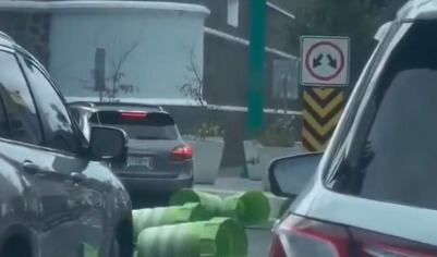 Automovilistas compartieron en redes sociales, el momento en el que un conductor rompió el orden al derribar la fila de barriles de seguridad vial que dividían los carriles cercanos a la Brigada de la Policía Militar “Guardia de Honor” en la zona 10 de la ciudad capital.