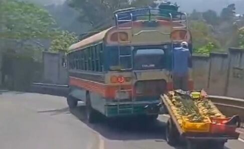 El comerciante enganchó la carreta de madera a una de las estructuras de hierro del bus y dejó que este lo guiara en la bajada. Se habla de que el sujeto arriesgó su propia vida al no ir asegurado.