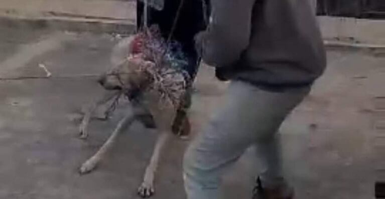 Usuarios los acusan de amarrar cruelmente al canino y luego subirlo a la palangana de un vehículo, aunque no se sabe con certeza como ocurrieron las cosas, en redes sociales lo calificaron como crueldad animal.