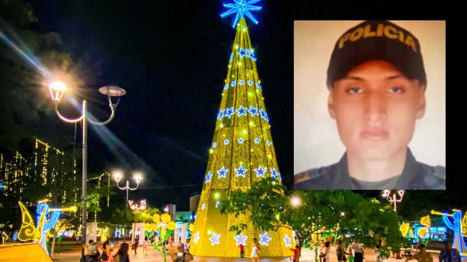 Un auxiliar de Policía, que se encontraba en labores de vigilancia y seguridad en el parque de Bolívar de Girardot (Cundinamarca) en Colombia terminó muerto luego de que cayera un árbol de Navidad que hacía parte de los adornos que instalaron en el lugar.