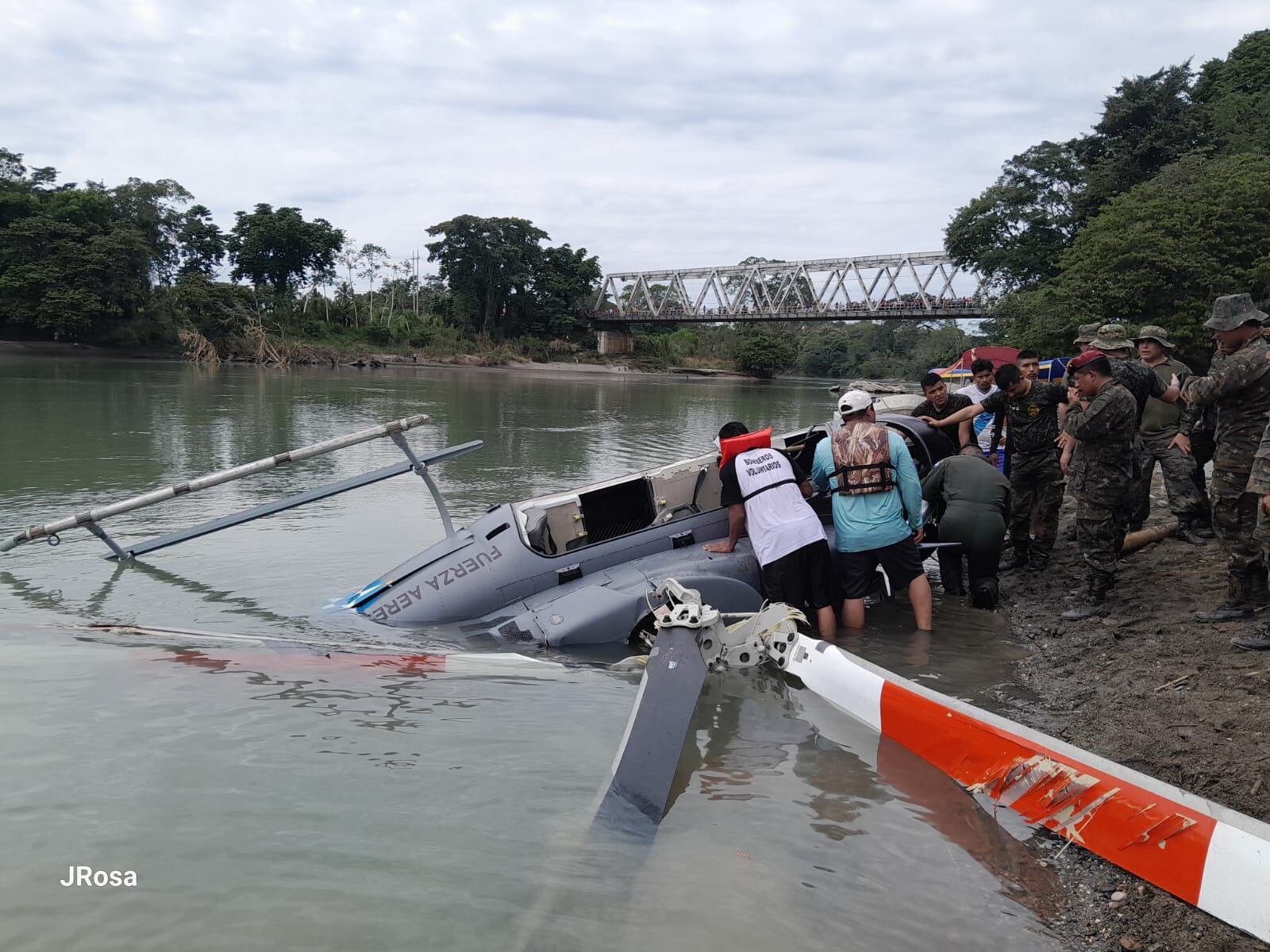 Posterior al accidente aéreo, los rescatistas iniciaron un operativo de búsqueda y rescate de la tripulación de un helicóptero que se desplomó en el kilómetro 512 de la Franja Transversal del Norte, en el barrio Playa Grande, Ixcán, Quiché.