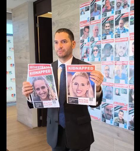 “El cese al fuego comenzó este domingo (19 de enero) con la liberación de tres rehenes israelíes y que Israel mandó también prisioneros terroristas de Hamás y ese es el fuego está en vigor y la esperanza que vamos a continuar con las próximas etapas de liberar más rehenes, en la primera fase 33 rehenes que son mujeres y personas enfermas enfermas o mayores de edad”, dijo Lavi cuando sostenía las fotografías.