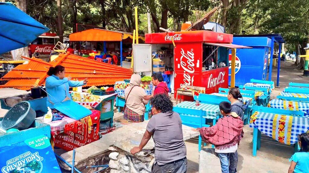 El fuerte viento que azota en el territorio guatemalteco terminó por derribar el techo de la venta de comidas y bebidas “Ingrid” en la orilla del lago de Amatitlán, en Guatemala. La propietaria fue herida y llevada por los Bomberos Voluntarios al Hospital Nacional de Amatitlán.