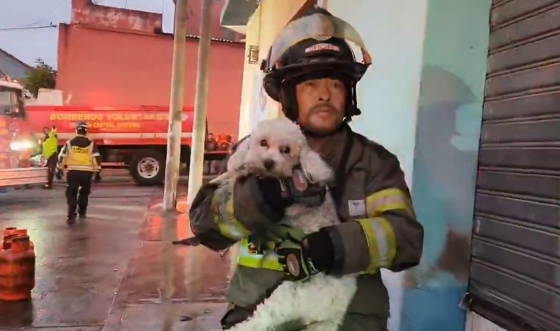 En el inmueble fue rescatado un perro blanco que se había quedado atrapado en el lugar. Por fortuna uno de los bomberos voluntarios lo vio y pudo sacarlo del lugar.