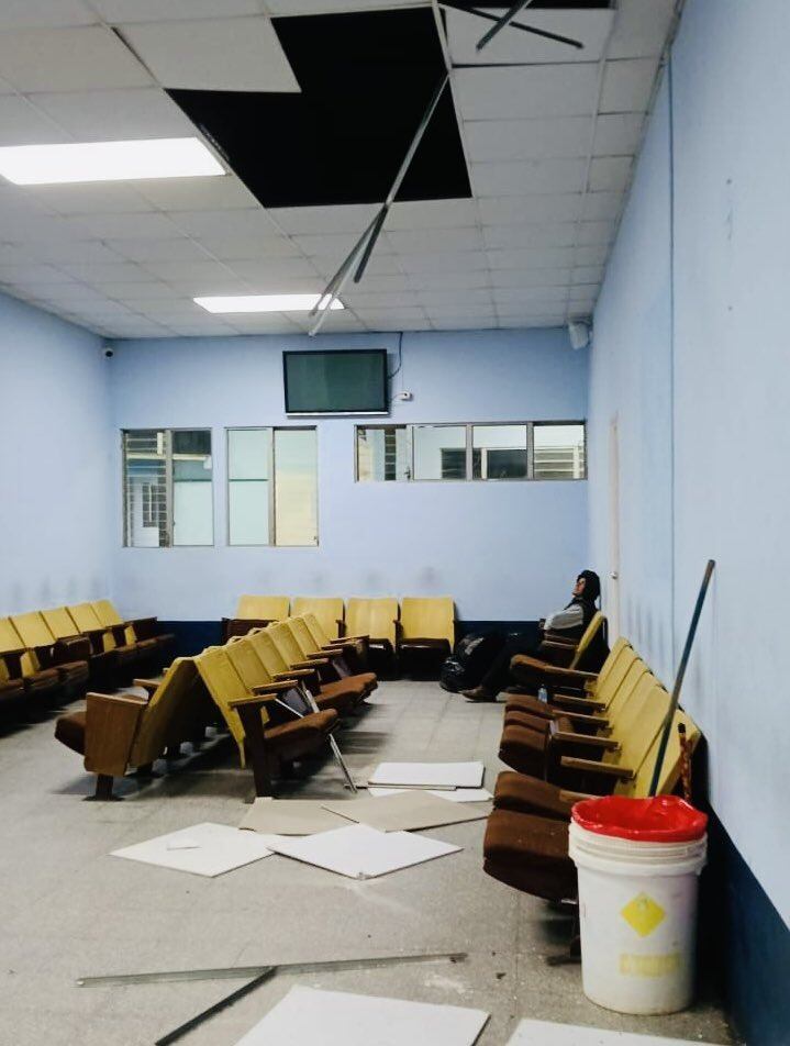 En el hospital nacional de San Marcos se reportó caída del cielo falso y daño en esa estructura, mientras que el barrio Peñate, San José, Escuintla, una vivienda sufrió daños.