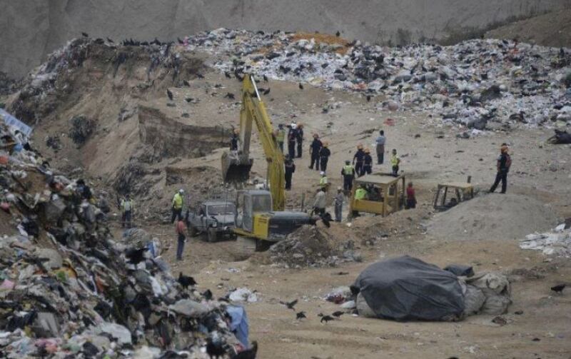 Un grupo de recolectores de basura protagonizan una protesta pacífica en la entrada del Relleno Sanitario, en la zona 3 de la ciudad de Guatemala. La molestia es por la entrada en vigor de una obligación guatemalteca para separar los desechos en tres recipientes.