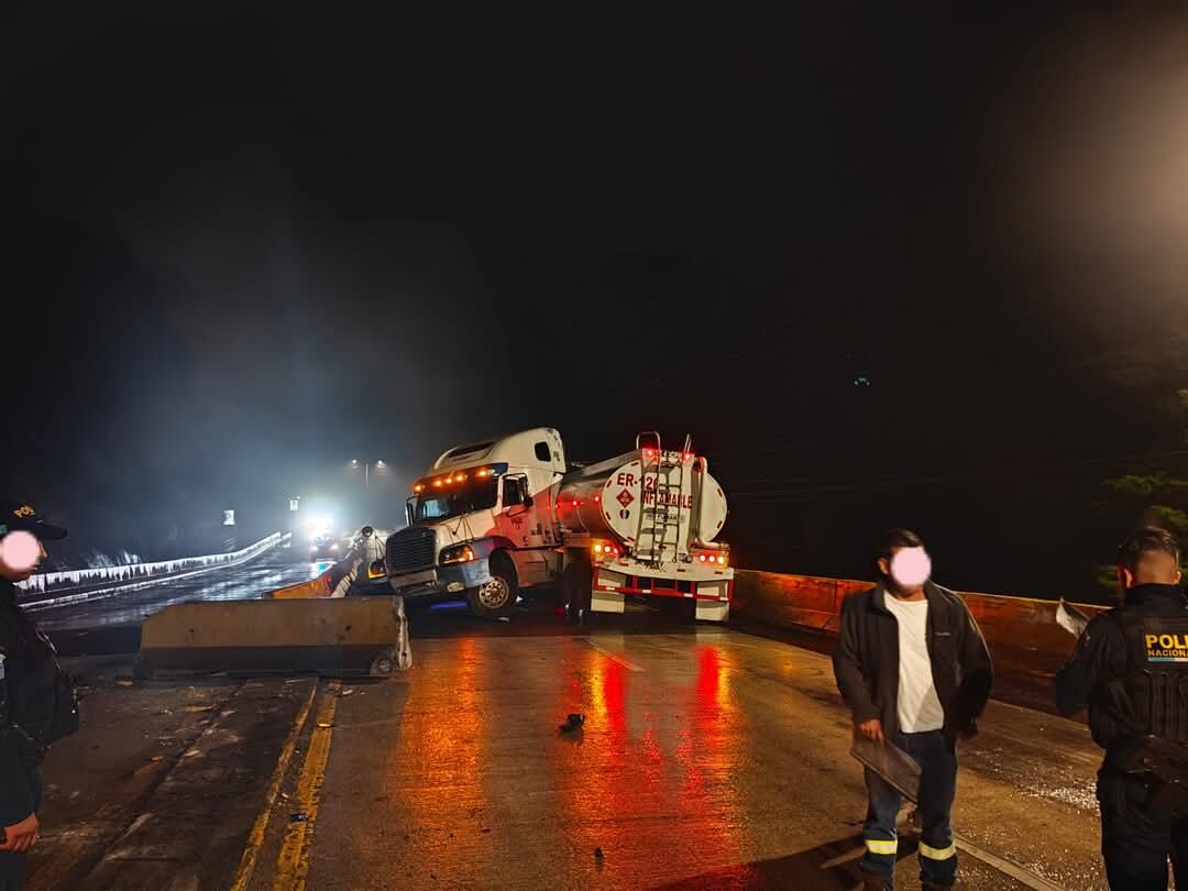 Según la Policía Municipal de Tránsito de Santa Catarina Pinula un automóvil particular y un tráiler colisionaron debido al asfalto mojado lo que produjo que los conductores perdieran el control.