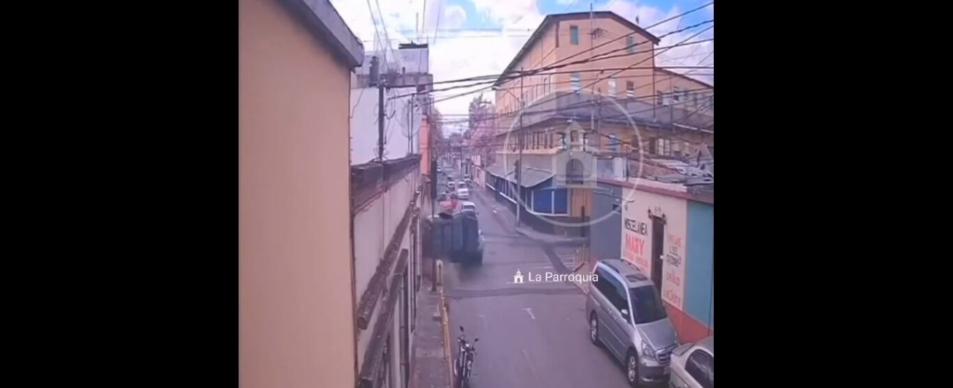 Un accidente vial fue captado por una cámara de seguridad en una intersección de la zona 1 de la Ciudad Capital, el pasado domingo, donde dos vehículos, que circulaban a excesiva velocidad, colisionaron de manera violenta.