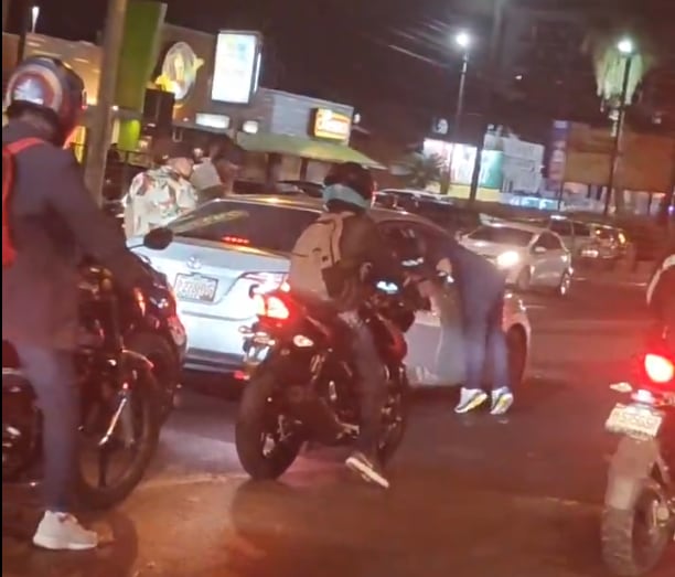 En las imágenes, se puede observar cómo dos hombres armados se acercan a un vehículo que se encontraba detenido en el tráfico.
