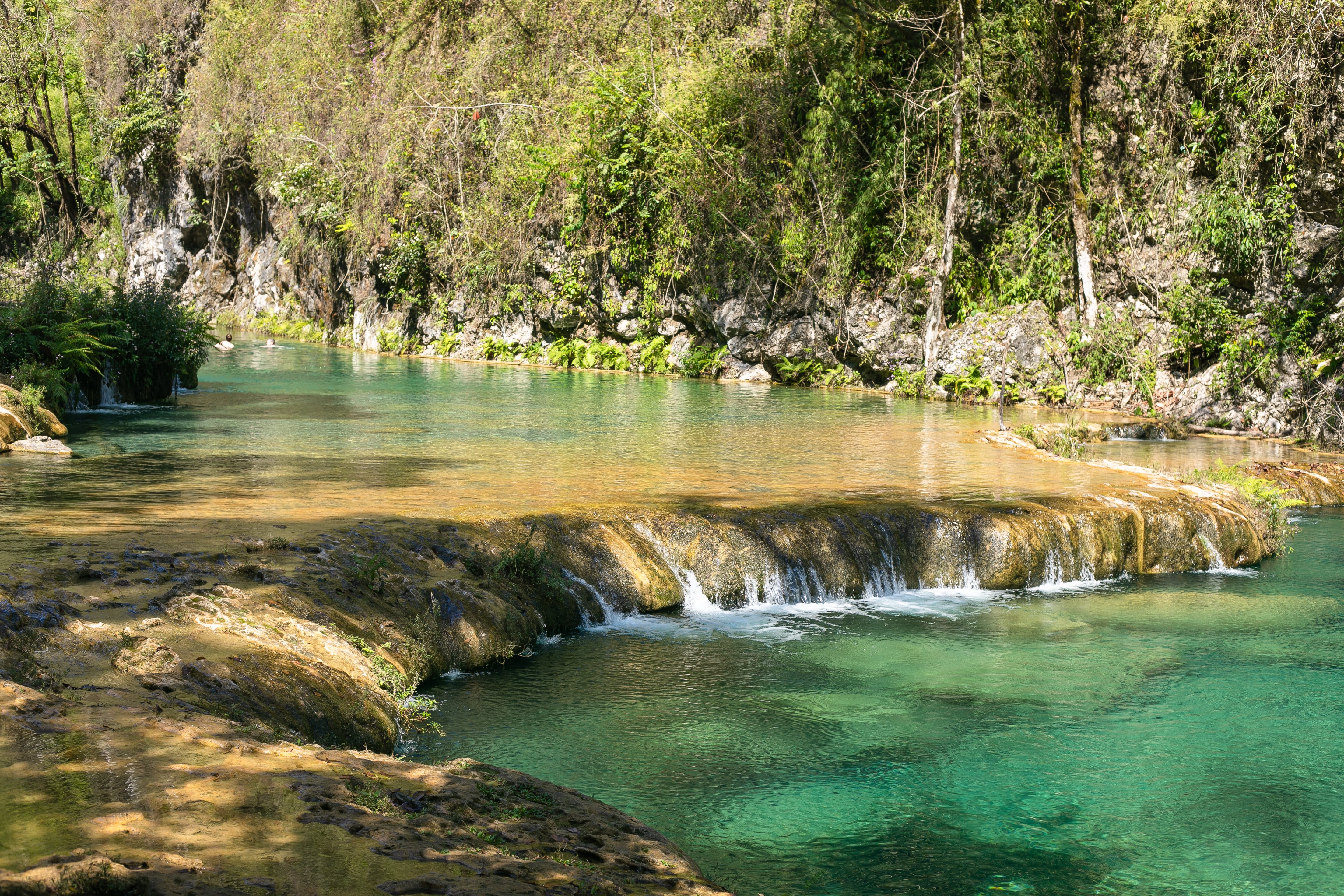 Visitar el área montañosa es impresionante durante la temporada seca porque se aprecian sus aguas turquesas y las cascadas que completan el paradisíaco valle entre las montañas de Alta Verapaz. El Monumento Natural Semuc Champey recibe 100 mil visitantes cada año y todos esperan volver para nadar en sus aguas.