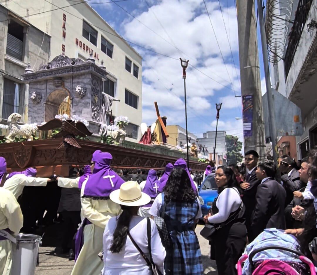 Un incidente se suscitó este 12 abril en la salida del cortejo procesional de Jesús Nazareno del Consuelo del Templo de la Recolección, cuando los fieles que llevaban en hombros a la imagen no aguantaron el peso de las andas y está tambaleaba de lado.