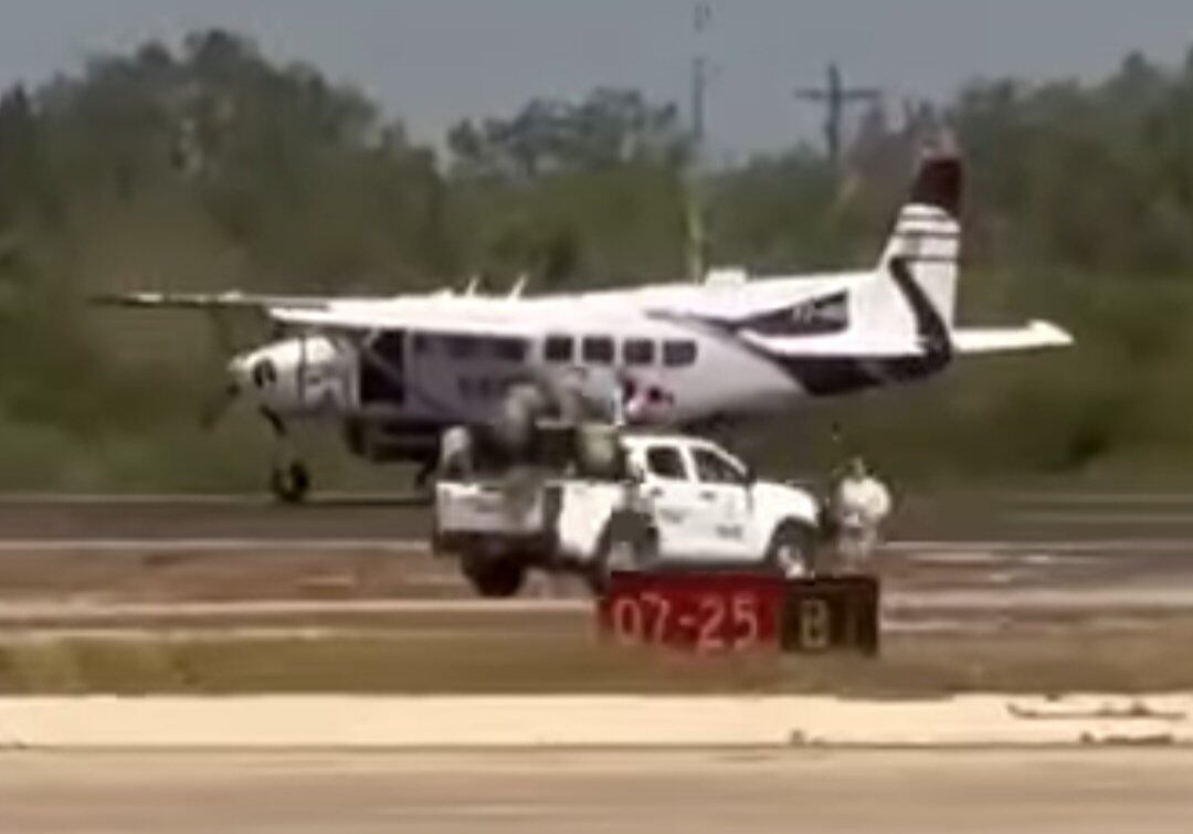 La avioneta finalmente aterrizó en el aeropuerto internacional de Ciudad de Belice, donde los esperaba un amplio despliegue de seguridad.